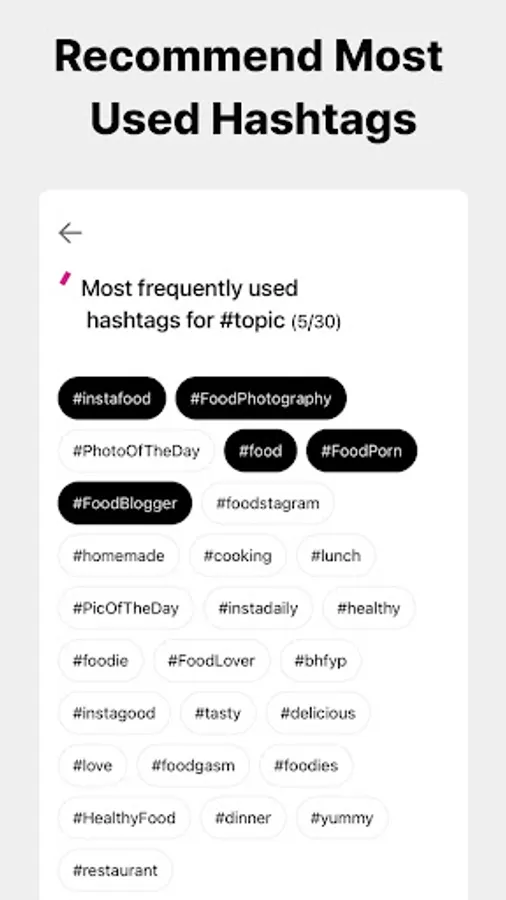- Recommend popular hashtags that fit the topic you chose.