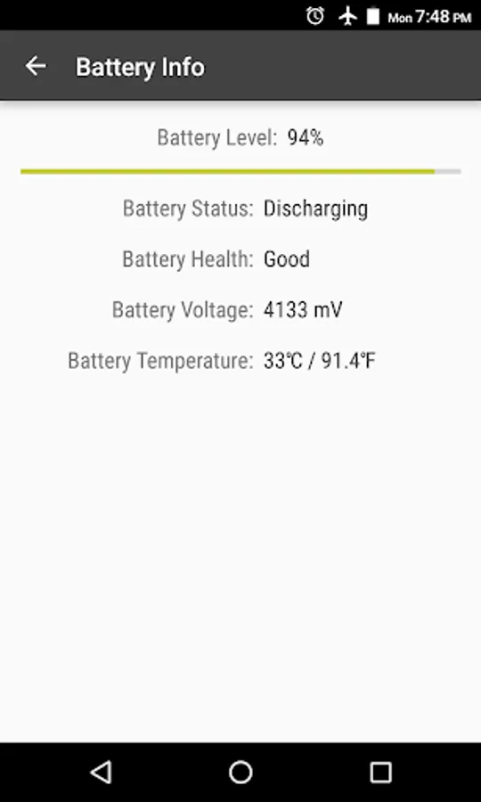 Tap on widget to see more battery details like voltage, temperature, health etc.