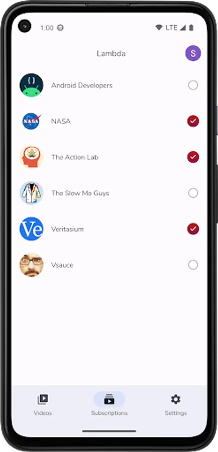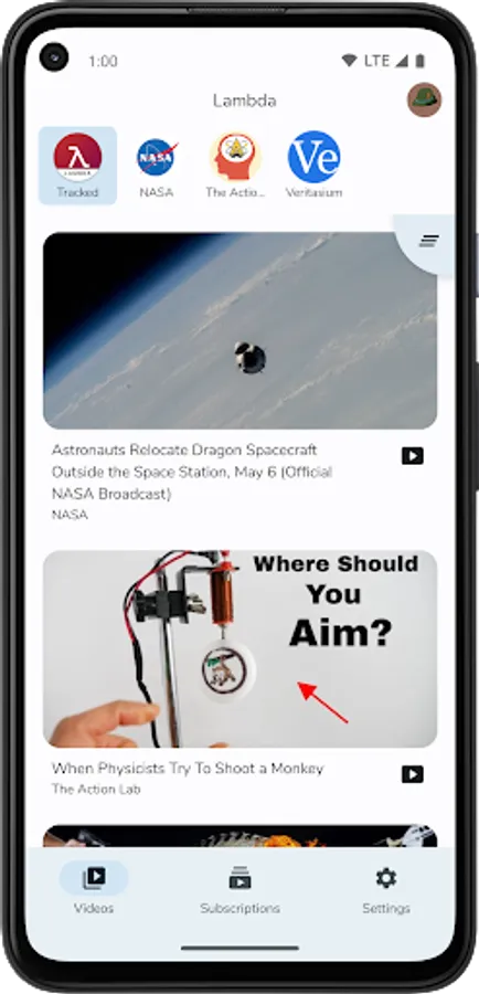 Lambda gathers all the latest videos from your favorite channels and presents them in one convenient place.