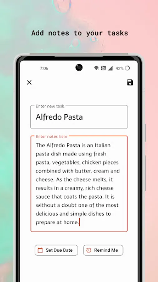 Add notes to your tasks. Set due dates and reminders to your tasks so that you never miss any important deadline.