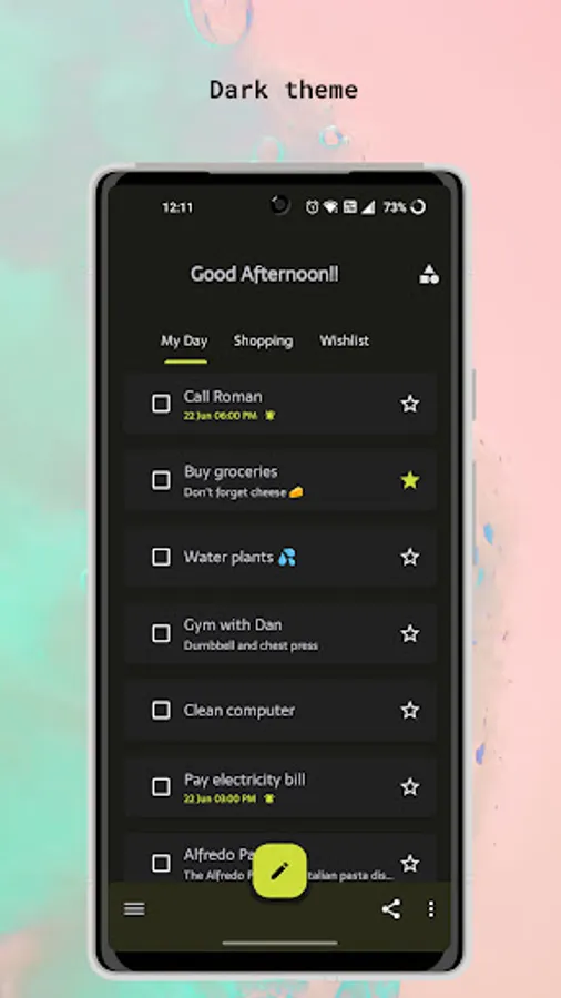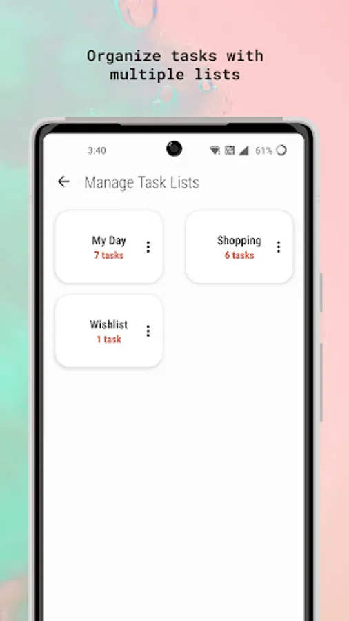 Simple, elegant, and easy to use to-do list app. You can create multiple lists as per your needs. Switch between lists by swiping left or right. Star a task to mark it important.