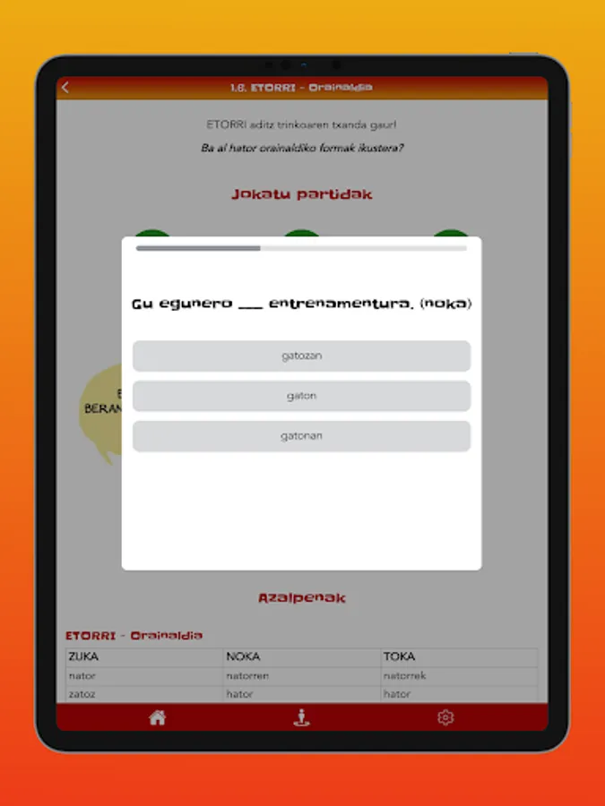 Appa hi! is an application to practice an aspect of the language, but in a relaxed way, always starting from the playful aspect. We will also introduce you to the theoretical side of Gitano and verb tables, but the essence of the learning process is a question-and-answer style game. Dedicated to all Basque speakers, young and old, regardless of their level of Basque. It's free and available for both Android and Apple phones. Download and start playing!