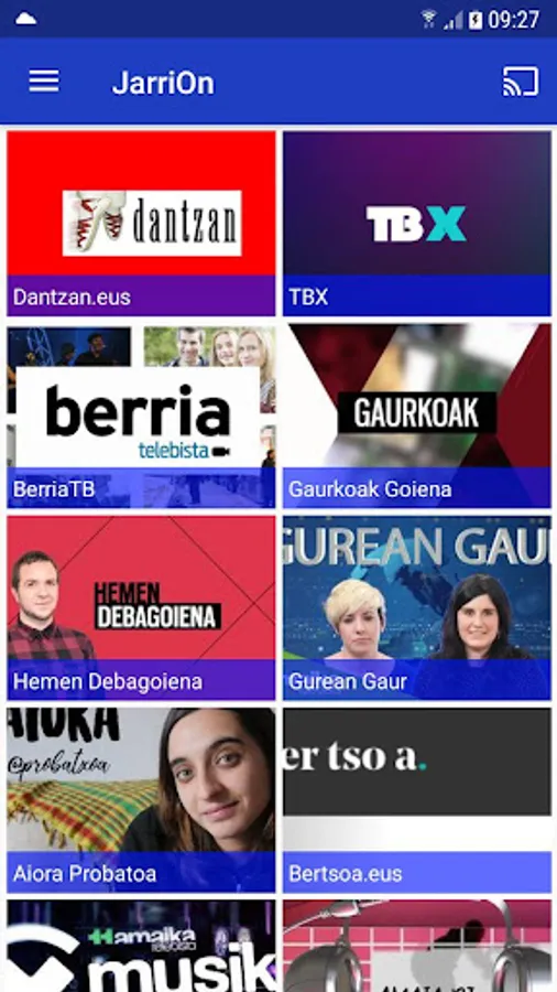 Basque audiovisual multiple video channels, public television, ETB, Eleven TV, while dancing, Gaztezulo and other media, as well as the Basque young video artists. Mobile video viewing, and the Chromecast device (39 euros is trastoa) If you have, as well as in television.