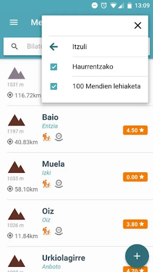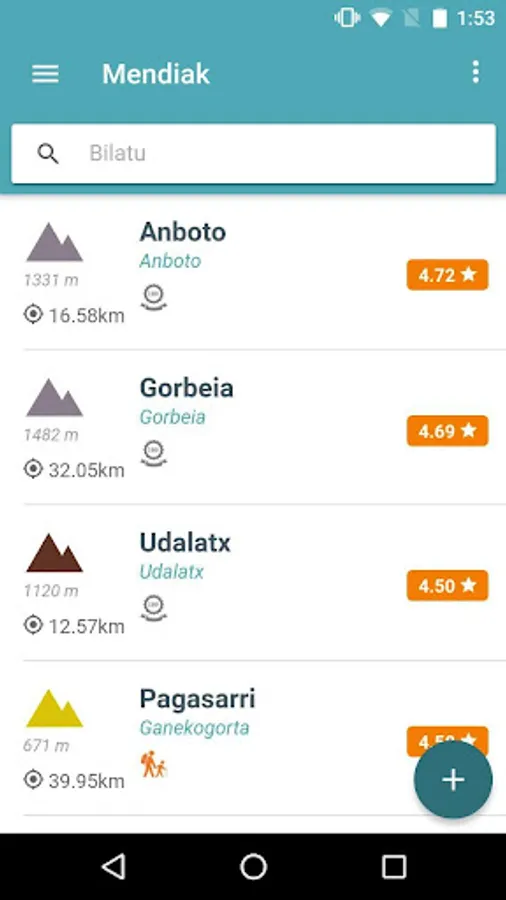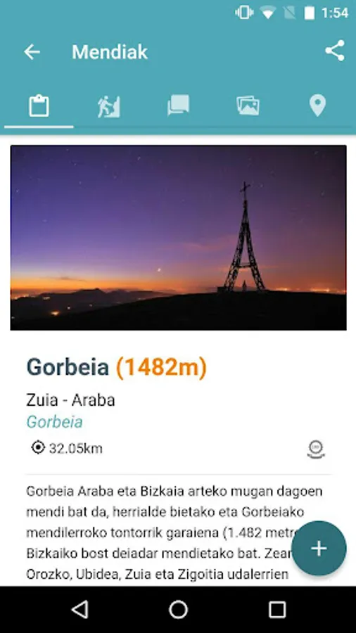 [+] Aplikazioak estatistika pertsonalak ematen dizkio erabiltzaileari (zeintzu mendi igo dituen, noiz, zenbat aldiz,...). Horrela, aplikazioa, nor berarentzat datu-base eta katalogo pertsonal modukoa ere izango da.