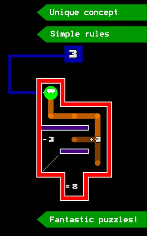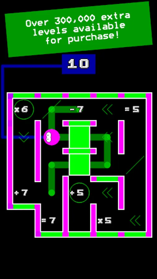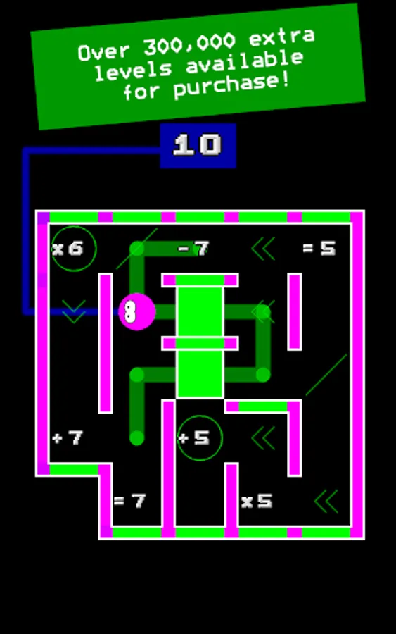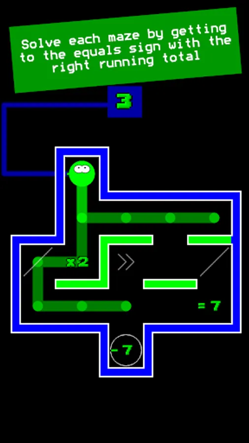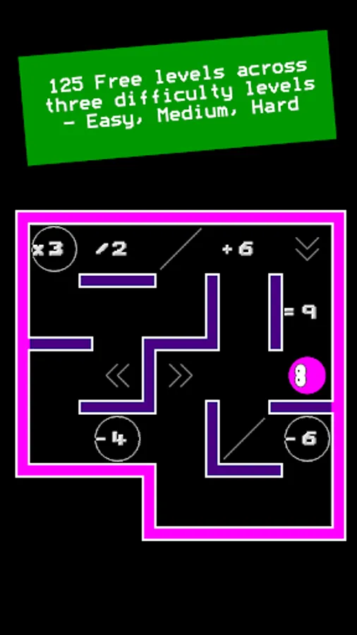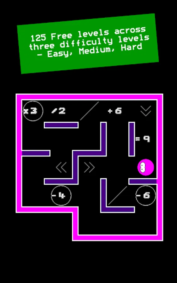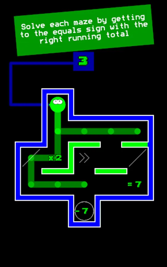 Numplussed is a unique puzzle maze game. Each maze has numbers and an equals sign. As you move through the maze the numbers are added or subtracted to your running total. Can you get to the equals sign with the right running total?