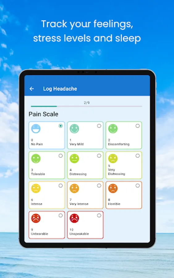 1. Helps you keep track of your headaches, frequency and pain levels of headaches, helps you measure and track your feelings, as well as medicines that you find effective and has a medicine reminder.
