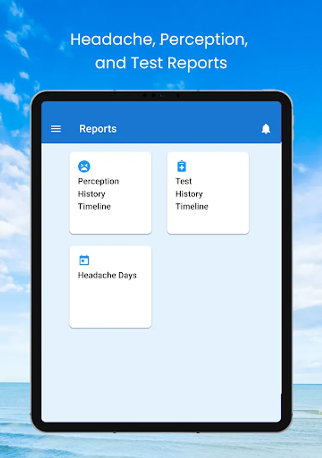 4. Provides your Headache Perception History, Test History Timeline and Graphs.