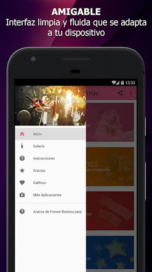 Install our app and celebrate in a big way the most beautiful gift he gave you life, with the most beautiful beautiful phrases for my daughter who gives you our app. Remember that each image has been made thinking of you, so that manage to convey all that holds your heart. Do not hesitate and download it. We will wait for you!
