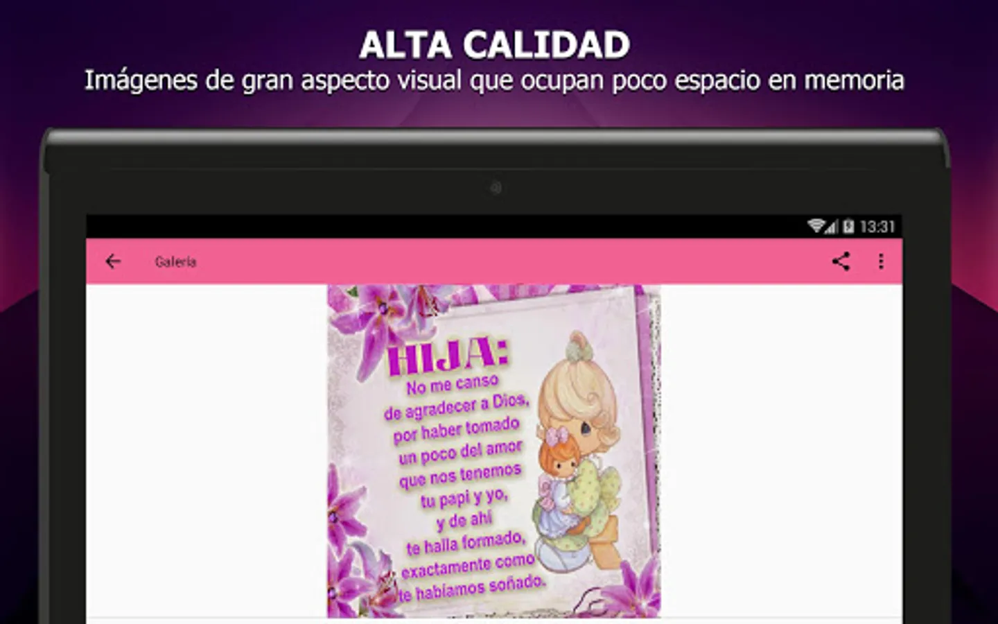 Our app offers many beautiful phrases for my daughter and best of all, you can really even if your device does not have internet, so you always have your images are available without limitations.