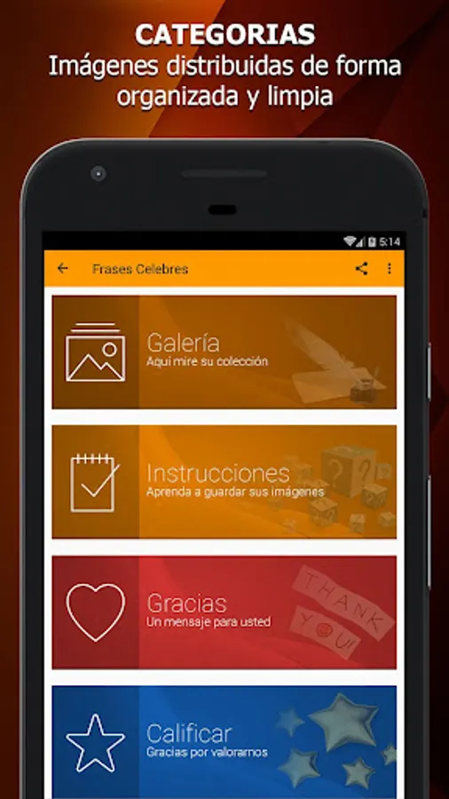 Our app, puts a click away, the best quotations, so you transform your life and fill them with wisdom, reflection, learning and evolving every moment of your day. We offer unique images and phrases iconic, who have left a mark on humanity, to continue sowing positive things in the next generations.