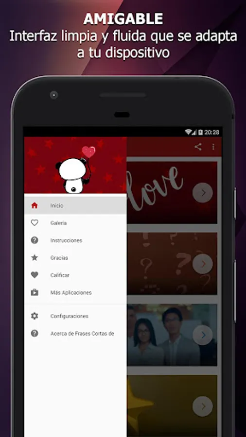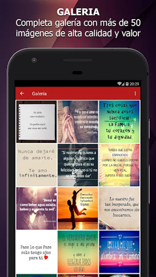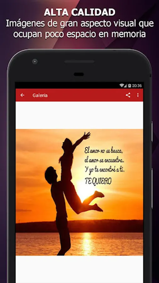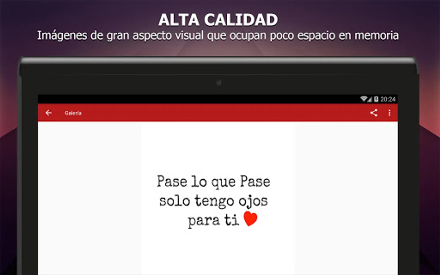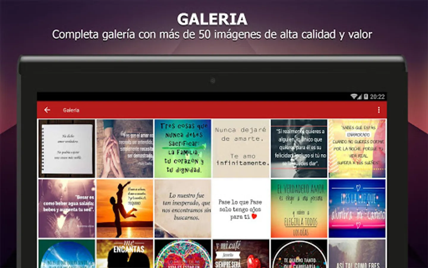 Our application is your best alternative because it offers beautiful and delicate phrases and images full of love, tenderness and warmth with which can love, serve and express everything you carry in your heart for the beloved. With us you can enjoy more than 50 images with which you can customize your social networking profiles, and devices in order to express what you really feel at all.