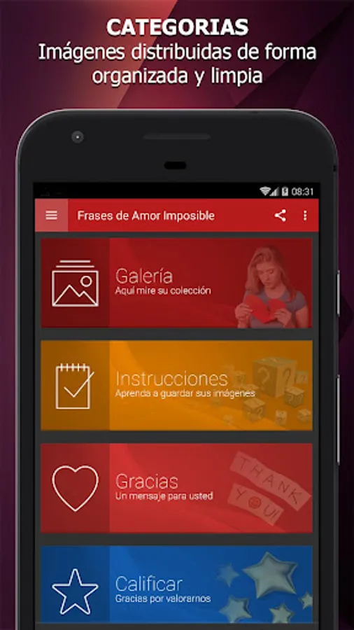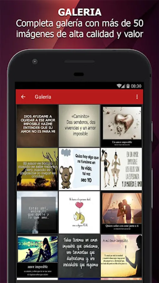 Our application gives you many phrases of impossible love and best of all, you can really even if your device does not have internet, so you always have your images are available without limitations.
