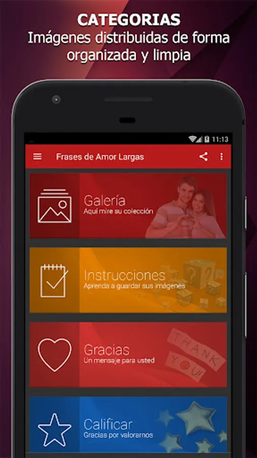 We offer the best app of the moment, which gives you the best quotes from long love to show love and passion that houses your heart. Celebrate every moment, moment and special date with your partner, with phrases and images 100% original, with which you can open your heart and show how much you love him, you value and want.