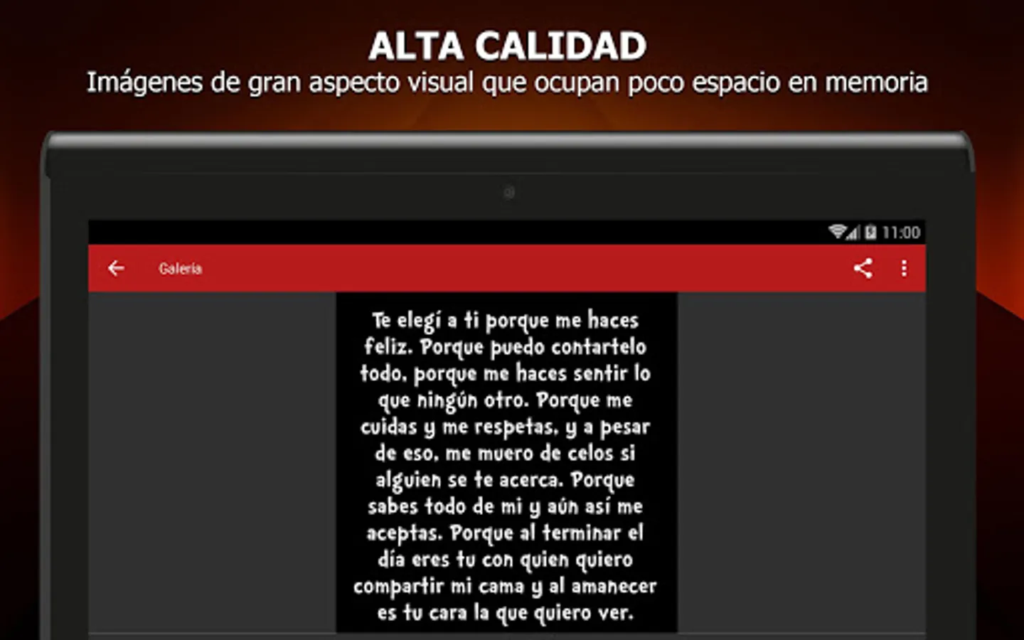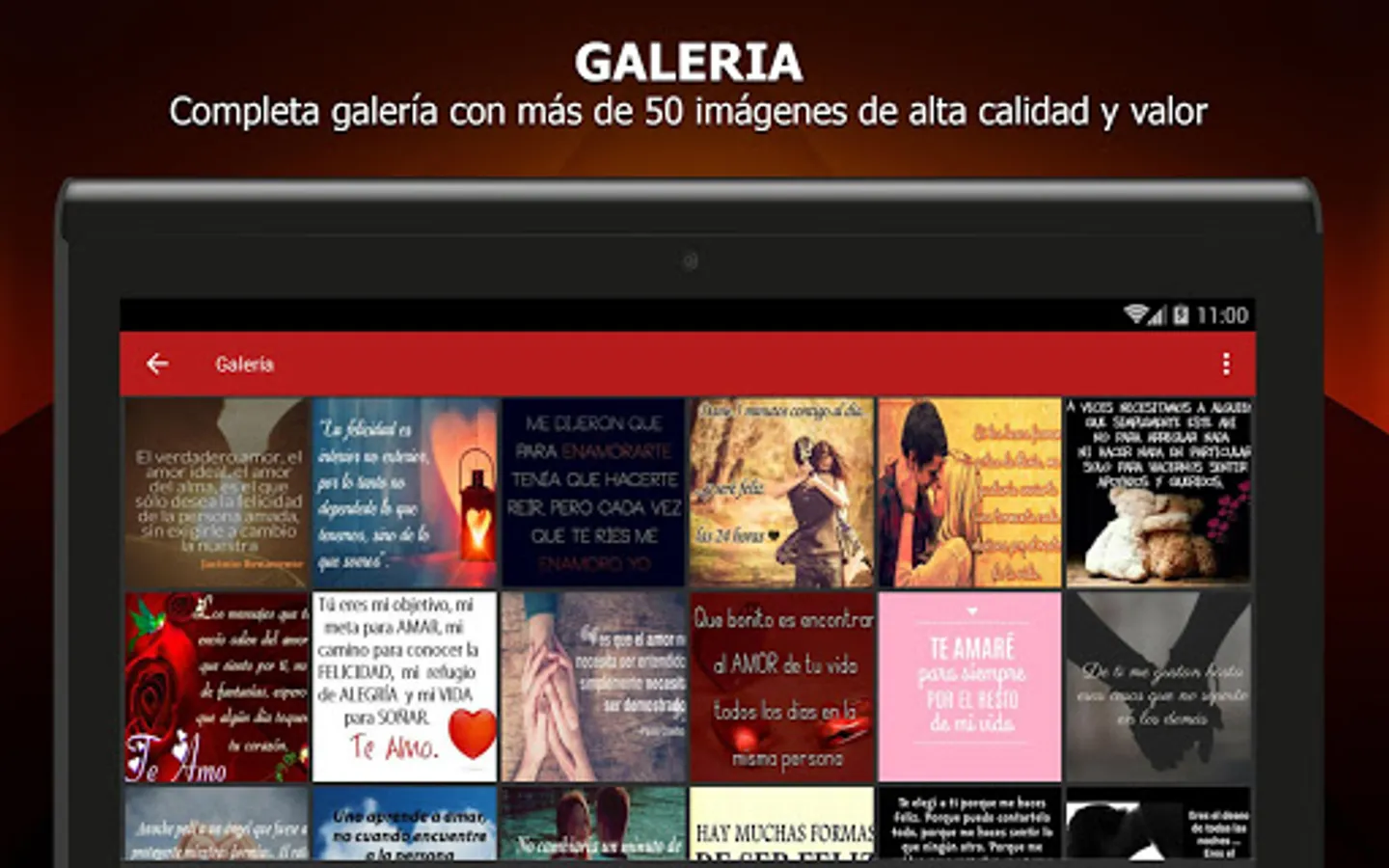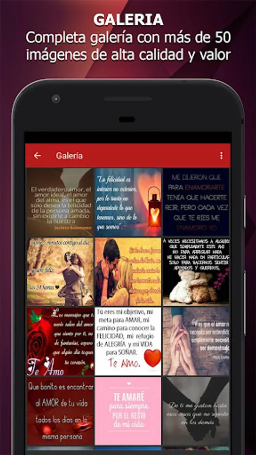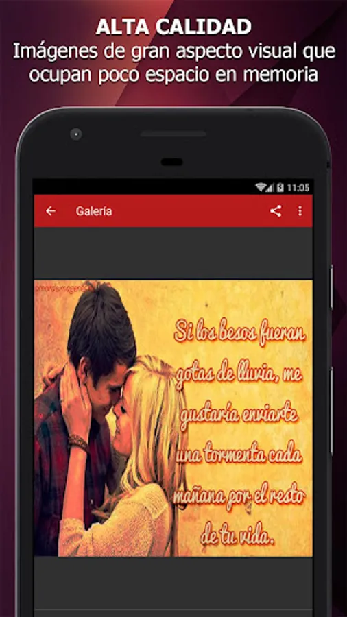 Our app offers many pictures with words of love and best of all, you can really even if your device does not have internet, so you always have your images are available without limitations.