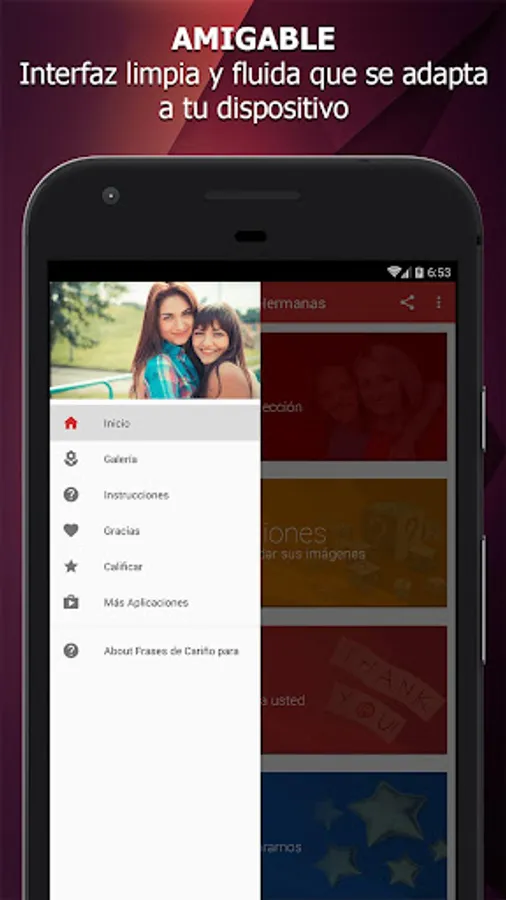 With our application you will find the best phrases of affection for sisters, with whom you can enjoy more than 30 images of excellent quality, with completely original designs with which you can express a genuine and sincere to those around you how.