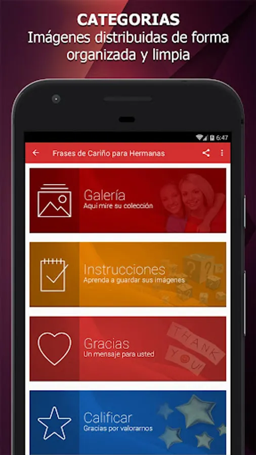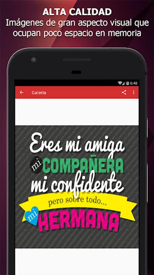 Our application gives you many phrases of affection for sisters and best of all, you can really even if your device does not have internet, so you always have your images are available without limitations.