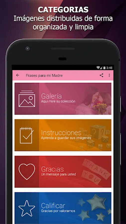 Our application gives you many phrases for the mother and best of all, you can really even if your device does not have internet, so you always have your images are available without limitations.