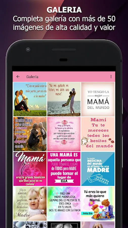 Our application offers more than 60 images with the best pretty phrases for a mother, which will be perfect to show them how much you want, values and love. Enjoy the opportunity to put a click away, so you retribuyas much love, affection, understanding, respect, support and especially the friendly hand that never leaves you and you always push to conquer your dreams and goals.