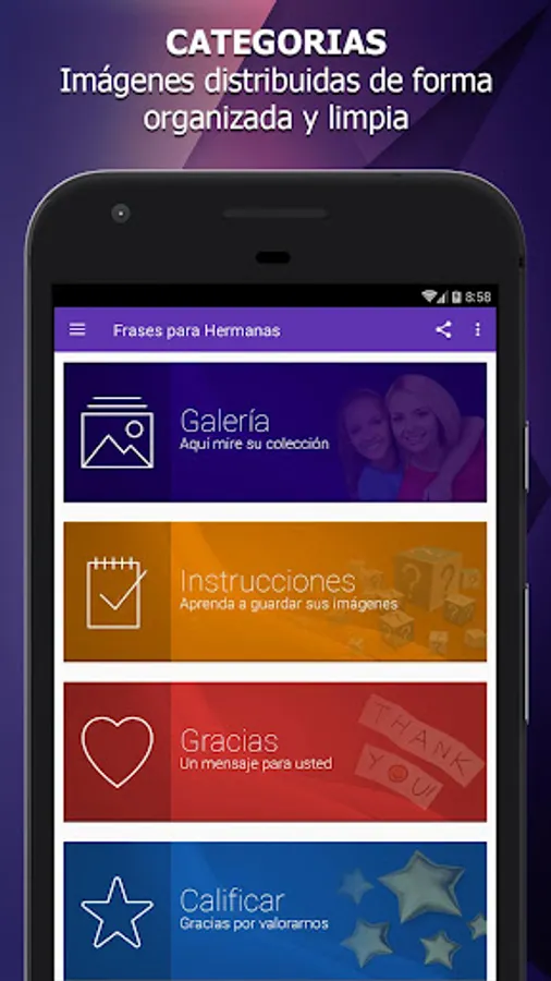 With our application, you can enjoy images and phrases to surprise your sisters, which have been created in high quality, especially for you and which can feel fully identified.