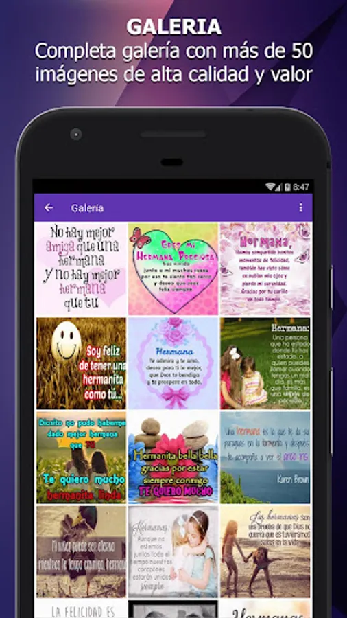 Our application gives you many phrases of affection for sisters and best of all, you can really even if your device does not have internet, so you always have your images are available without limitations.