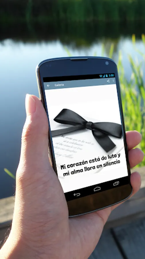This application features over 30 images of ties Mourning high quality and phrases that support the feeling of sadness that is going through the loss of a loved one. Perhaps a friend is going through a time of grief, remember that you can share through their social networks our ties, these will show the great support they have from you.