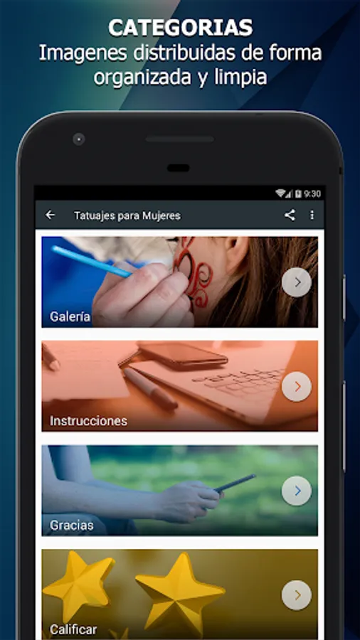 Our application of tattoos for women offers a wide collection of images of excellent quality, specially designed to show your passion for body art, allowing you to share the various styles with friends, acquaintances and relatives. You can choose the tattoo you've always dreamed of and so transform your style or personality.