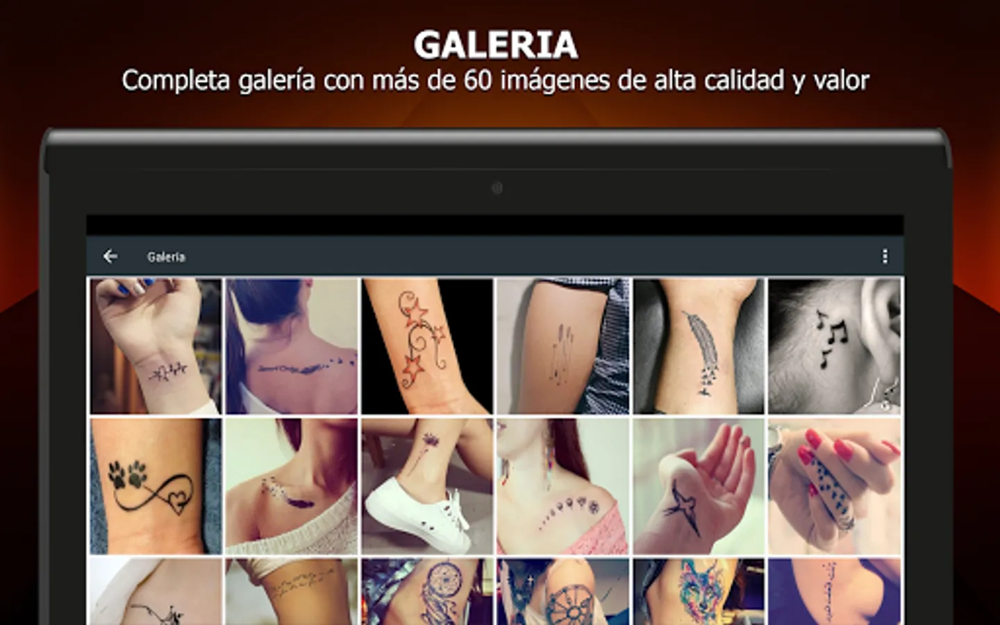 Installs our tattoos for women app and show your fascination with the body paint! We offer high quality images and excellent resolution. We have more current and original designs moment. Show your passion for body art, your style and rebellious personality, why download this amazing free app on all your devices. We will wait for you!