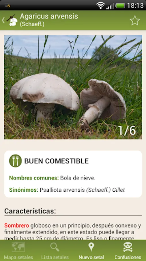 This app mushroom can create on your phone your own private database with setal georeferenced since the application will allow you to save, using the GPS on your phone, the location of the setal that are of interest, grouping them by zones. This advanced georeferencing system not only lets you save the location also allows you to add photographs of setal and includes a guidance system that will take you directly to the site the next time you visit the area.