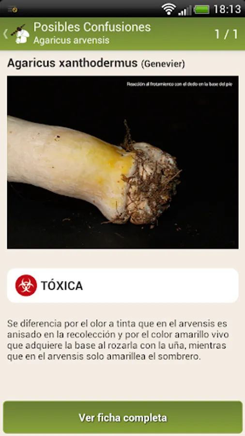 While it is always imperative to consult with an expert before consuming any species we do not know, if you make trips to the mountain to collect mushrooms for consumption, the FUNGIPEDIA application will allow you to discard many of them directly in the field, so that no crop in unnecessary copies , allowing them to continue to fulfill its essential functions in nature and avoiding poisoning. To do this, you find the record of the most common edible species of confusion a button that will show you which are the most dangerous species with which it is often confused said edible species.