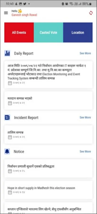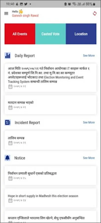 The app is designed by Election Commission, Nepal, to monitor and report different events during the election period.
