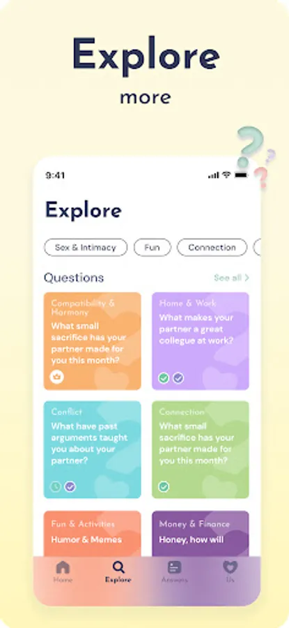 -Answer daily questions prepared by experts with your partner each day to become closer.