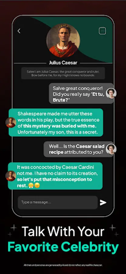 Important Note: Our app is driven by our unique, proprietary technology, built from the ground up on large language models. Please bear in mind that all statements made by the characters are entirely fictional!