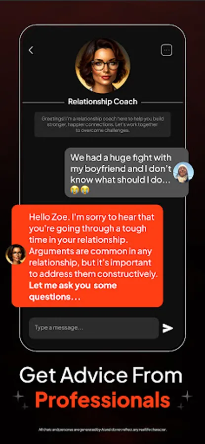 Looking for expert advice? Connect with professionals from various fields, including chefs, doctors, or relationship coaches. Seek guidance, ask for recommendations, or gain insights into their specialized domains. If you prefer, create your own AI companions & characters —a virtual girlfriend & boyfriend, a best friend, or anyone you can imagine. Develop unique relationships and enjoy meaningful conversations tailored to your preferences.