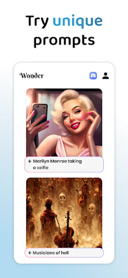 Turn words into mesmerizing AI generated art! All you need to do is enter a prompt, pick an art style - and watch Wonder bring your idea to life in seconds!