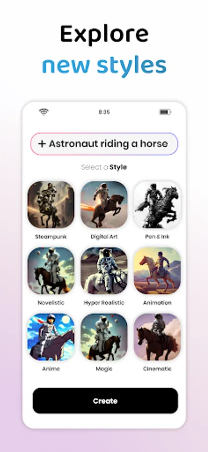 You can choose from a range of familiar art styles, from ornate baroque paintings to futuristic synthwave landscapes and everything in between.