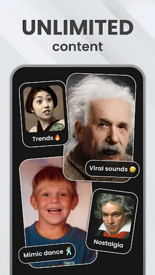 Animate old photos with the Nostalgia mode. Bring black & white photos back to life.【 CREATE A FACE DANCE OF YOUR OWN 】