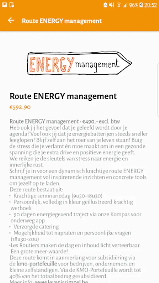 • de 3 landroutes: Ver-sterk jezelf / Energy management, Ont-wikkel jezelf / Self management, Be-denk jezelf / Mind management