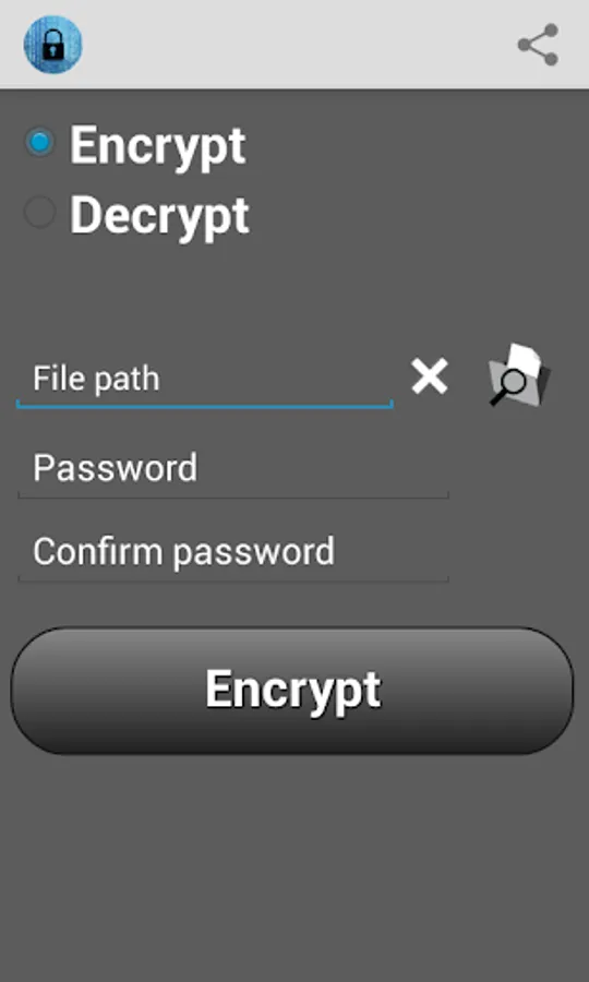 This application is used for encrypting and decrypting files with 256 bit AES algorithm. You can use it to encrypt files before putting them on online locations (cloud storage, Google Drive, Skydrive, Box, Dropbox, Gmail, etc.) or to store encrypted sensitive files on your Android phone so that they are unreadable to those who don't know your password.