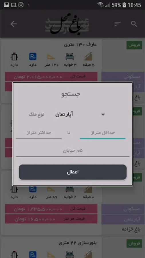 نوع ملک ، متراژ ، قیمت ، نام مالک ، نام خیابان ، تعداد واحد در طبقه و شناسه ی فایل، فایلتونو پیدا کنید.