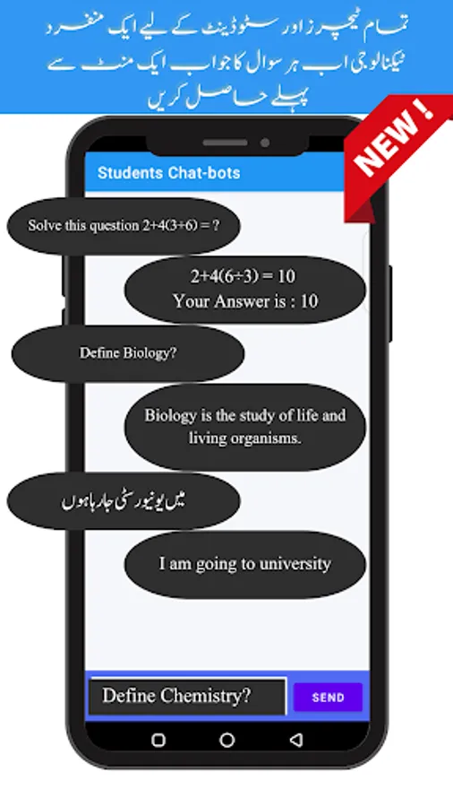 In this app we Introducing Students chat bot, where all students and teacher can solve any questions with a seconds. an innovative and intelligent virtual assistant designed to enhance your mobile experience. With this Students Chat-bot, you can effortlessly communicate with the chat bot and get instant responses to your queries. Utilize the power of artificial intelligence and natural language processing to receive accurate and relevant information at your fingertips. Stay connected and productive with our user-friendly Students chat bot, offering seamless interactions and personalized assistance.