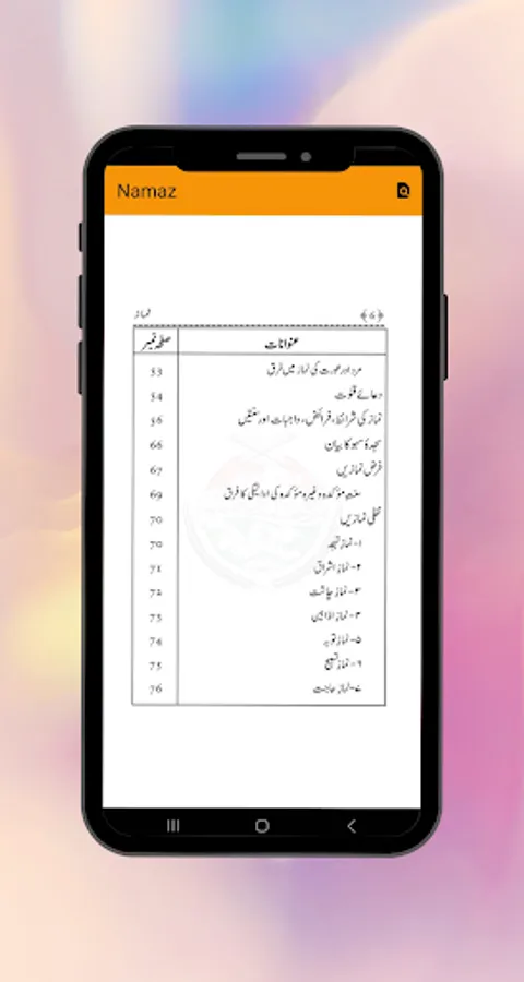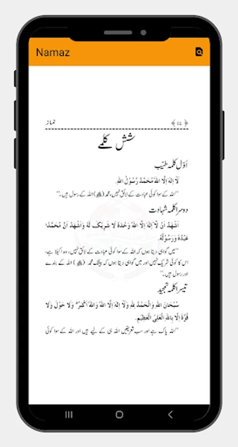 This app contain Emaan ka Biyan, Six Kalmaz, Taharat Ka Biyan, Wazo ka Tariqa, Gussal ka Tariqa, Tayammum Ka Biyan, Namaz Ka Biyan, Namaz e Jumma, Namaz Ki Niyyat, Azan, Takbeer ya Akamat, Azkar e Namaz, Tasmeeh, Namaz Ka Tariqa, Mard ar Aurat ki Namaz ka farq, Guide of All Namaz and Masnoon Duaeen