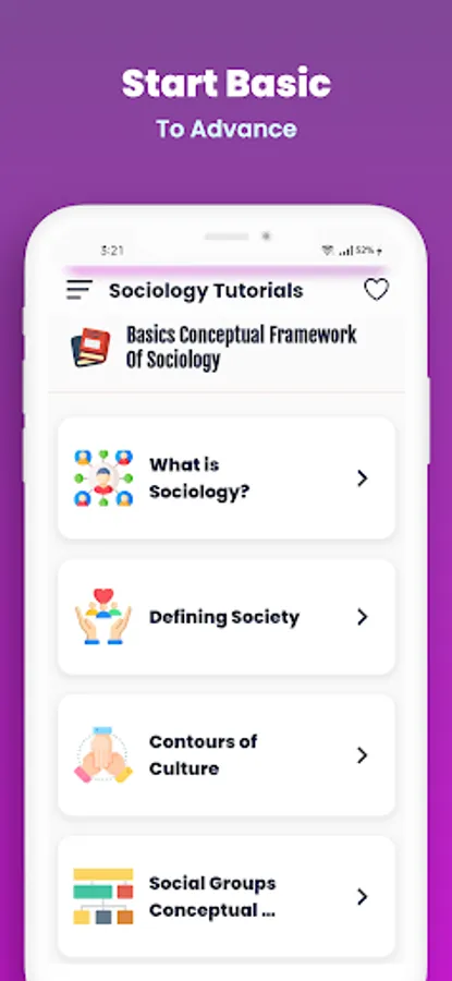 Learn sociology guide app is essential for beginners. It will give you most common and useful chapters. This basic sociology course will provide you example and explanation. So now you can carry your basic sociology book and can learn anywhere anytime.