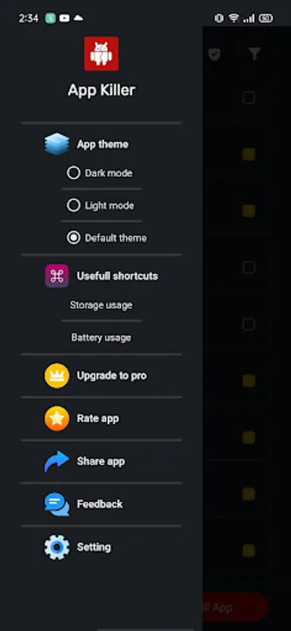 Background running apps make devices slower. AppKiller help you close apps running in the background .