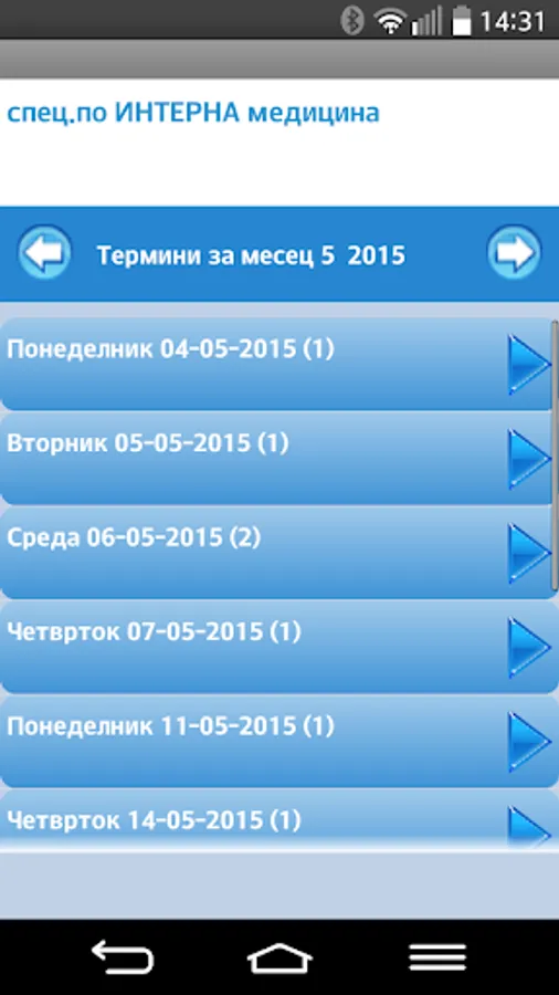 The application provides access to the scheduled dates and patients physician for specific dates, so doctors at any time can get information on how many patients have scheduled during the given date and eventually to patients contact them if necessary for some reason (giving Council prior examination or information to refuse term), and all this without the need to use a laptop or desktop computer.