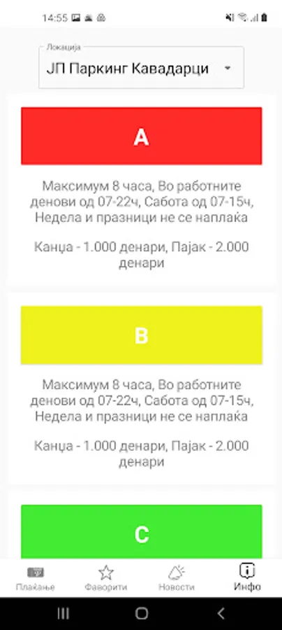 - Always check the zone number with the nearest information board before sending a message and wait for confirmation from the parking service operator.
