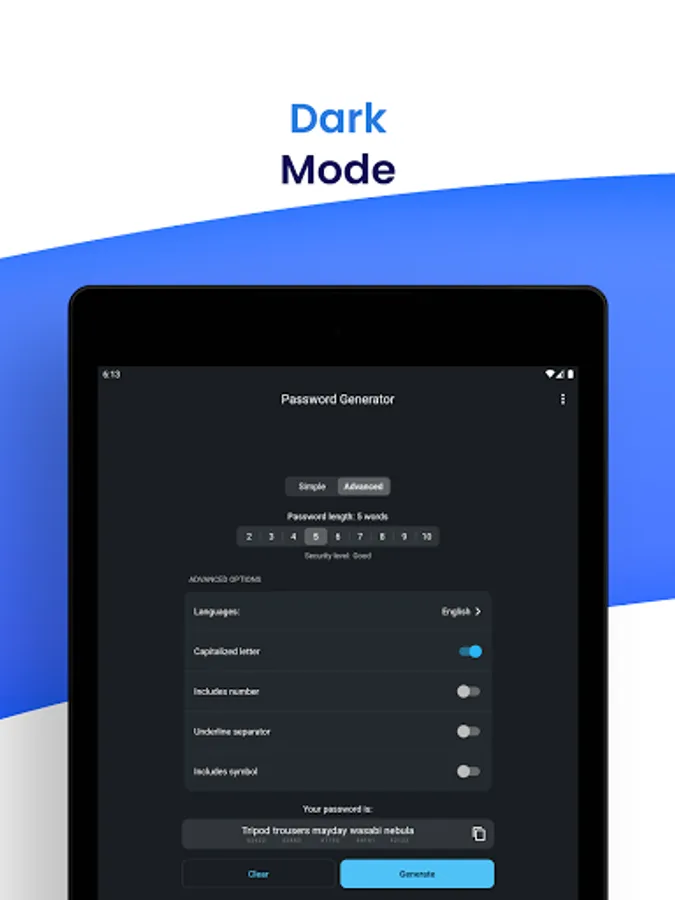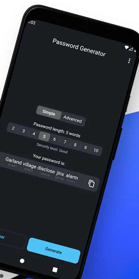 The passwords that this App generates are relatively easy to remember and to type, and are a lot better and safer than the ones a human can come up with.