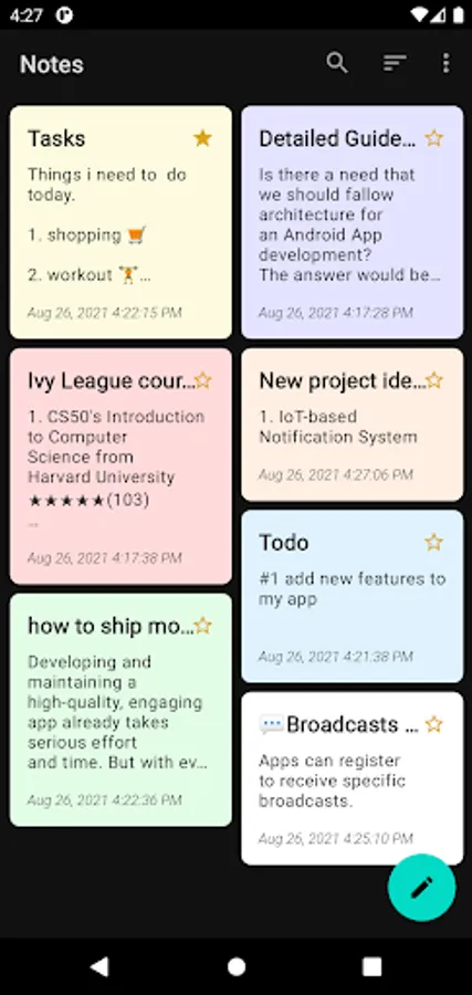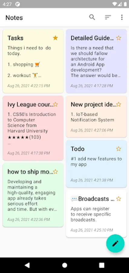 A simple and intuitive Notepad app for writing notes, memos, e-mails, messages, shopping lists, and to-do lists.
