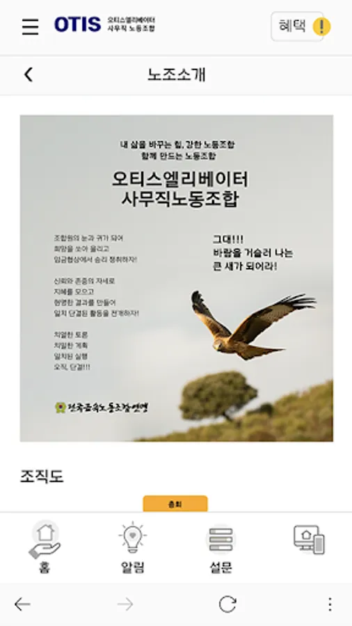 The power to change my life, a strong labor union As a labor union that creates together, it is the Otis Elevator office workers union.