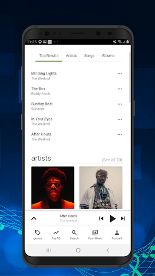 - Search for your favorite song, artist, or album