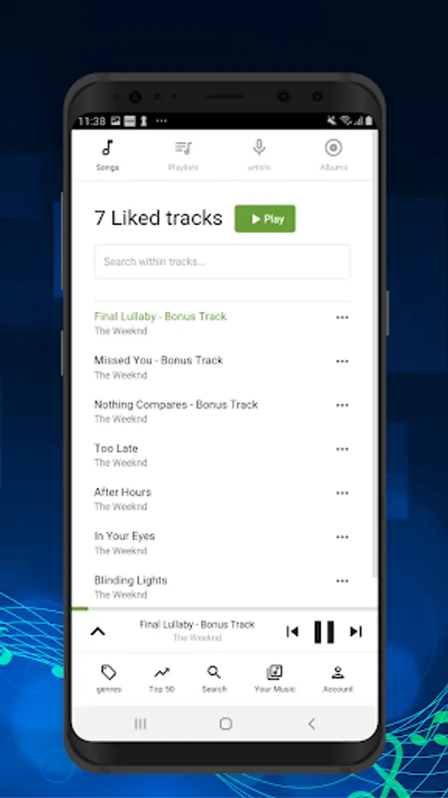 With Music App, you can listen to millions of songs, albums and podcasts for free from all over the world. Categorize songs based on your favorite artists, genres and popular tracks.